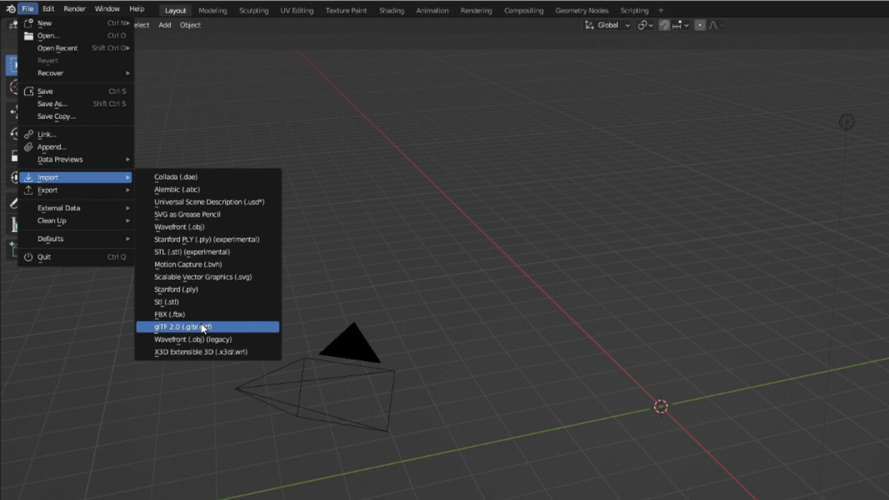 接下来,打开 Blender(版本 3.1 或更高)。转到 File → Import → GLTF 2.0,并导入你下载的文件。你可能会注意到,该模型的多边形数量远远超过了许多实际应用(如游戏)的推荐数量。