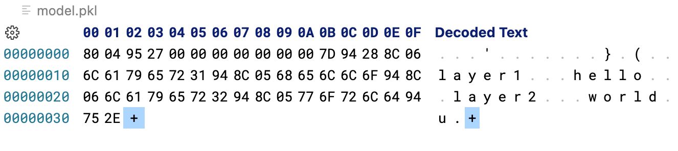 - 安全性:任何东西都可以被 pickle,包括恶意代码。如果序列化数据未经过适当验证,这可能会导致安全漏洞。例如,Snyk 的这篇文章解释了 pickle 文件如何被植入后门。