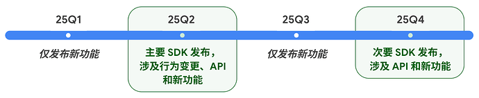 第四季度的次要版本将包含主要版本发布后的功能更新、优化和问题修复。它还将包含新的开发者 API,但不包括任何影响应用的行为变更。