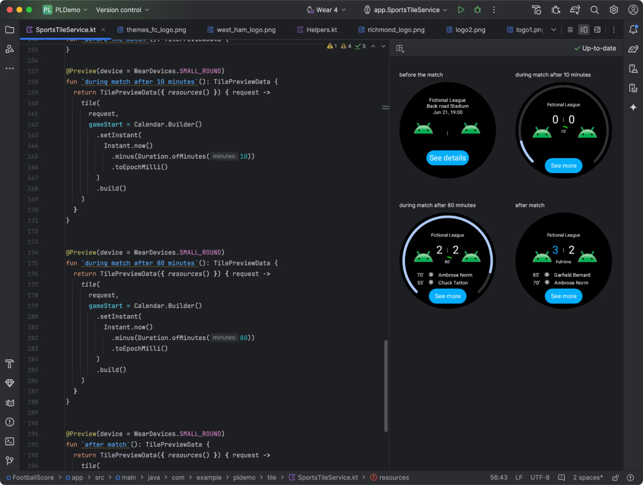 您现在可以通过包含 Jetpack Tiles 库 1.4 版来 查看 Wear OS 应用的功能块快照。如果功能块的外观会根据特定条件发生变化,例如内容随设备屏幕大小而变化,或是体育赛事进行到中场休息,预览面板将特别有用。