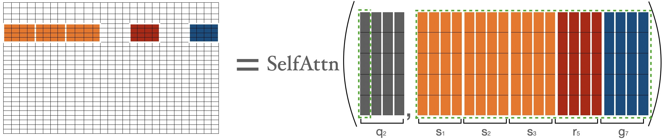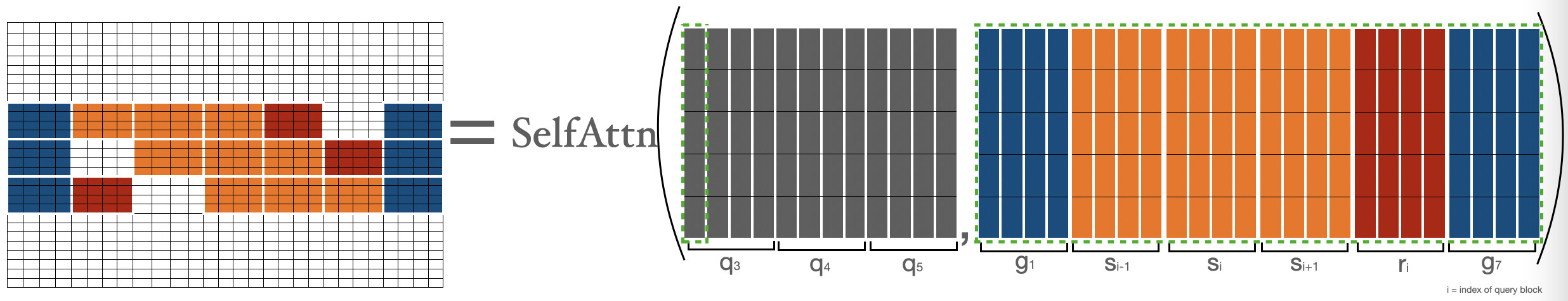 - 随机词元: 随机选择一些词元,这些词元将通过关注其他词元来传输信息,而那些词元又可以传输信息到其他词元。这可以降低直接从一个词元到另一个词元的信息传输成本。