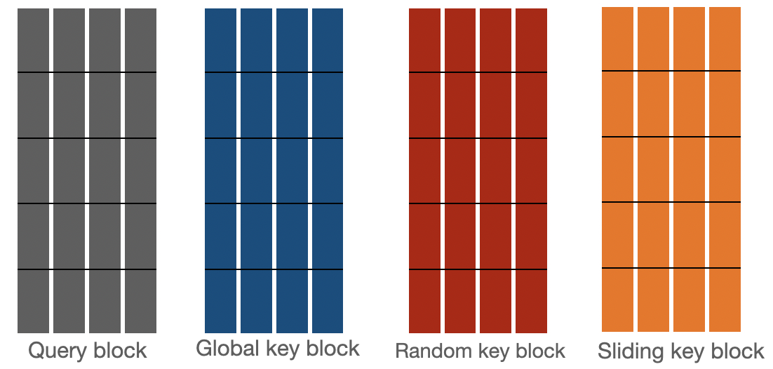 | 注意力类型 | 全局次元 | 滑动词元 | 随机词元 |