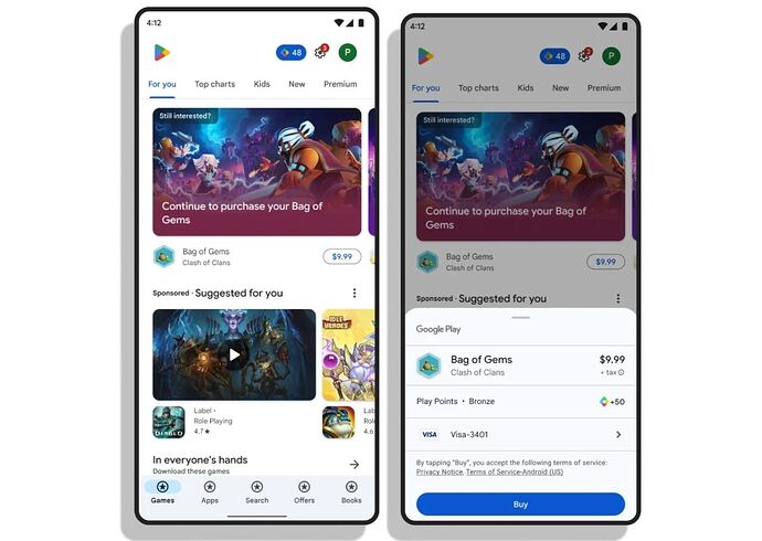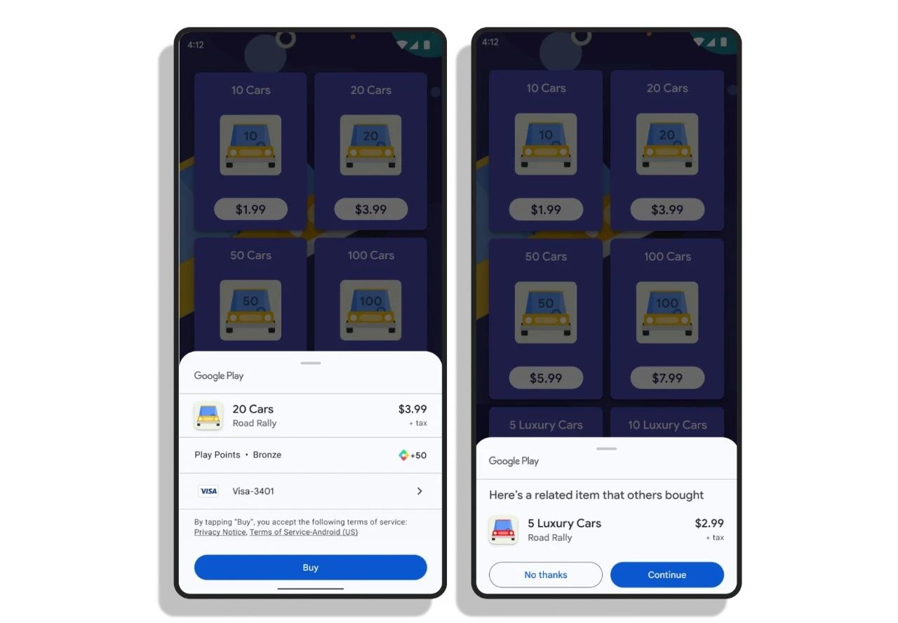 购买流程推荐 :我们全新的算法推荐引擎可帮助用户发现他们可能购买的相关应用内购商品。只需选择要在 Google Play 管理中心中展示的产品,我们将在购买旅程的不同时刻推荐热门或相关选项,帮助用户找到他们需要的东西。我们的早期结果显示,消费平均提升了 3%。