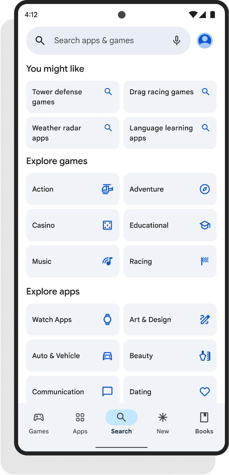 我们还发布了新功能,为浏览 Google Play 商店的用户创造更具吸引力和个性化的体验。