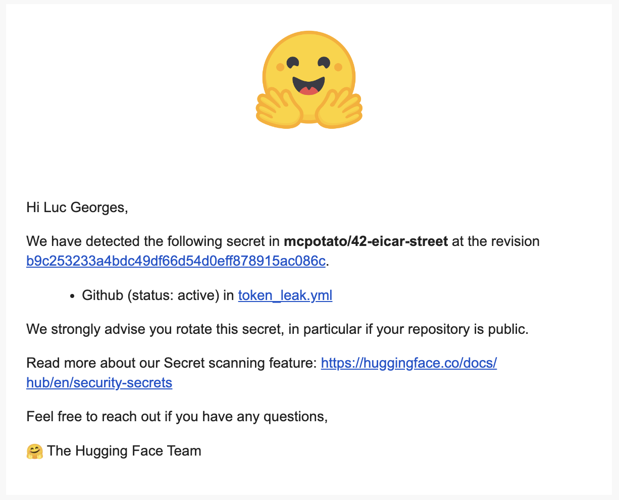 在 Hugging Face,我们致力于保护用户的敏感信息。因此,我们扩展了包括 TruffleHog 在内的自动化扫描流程