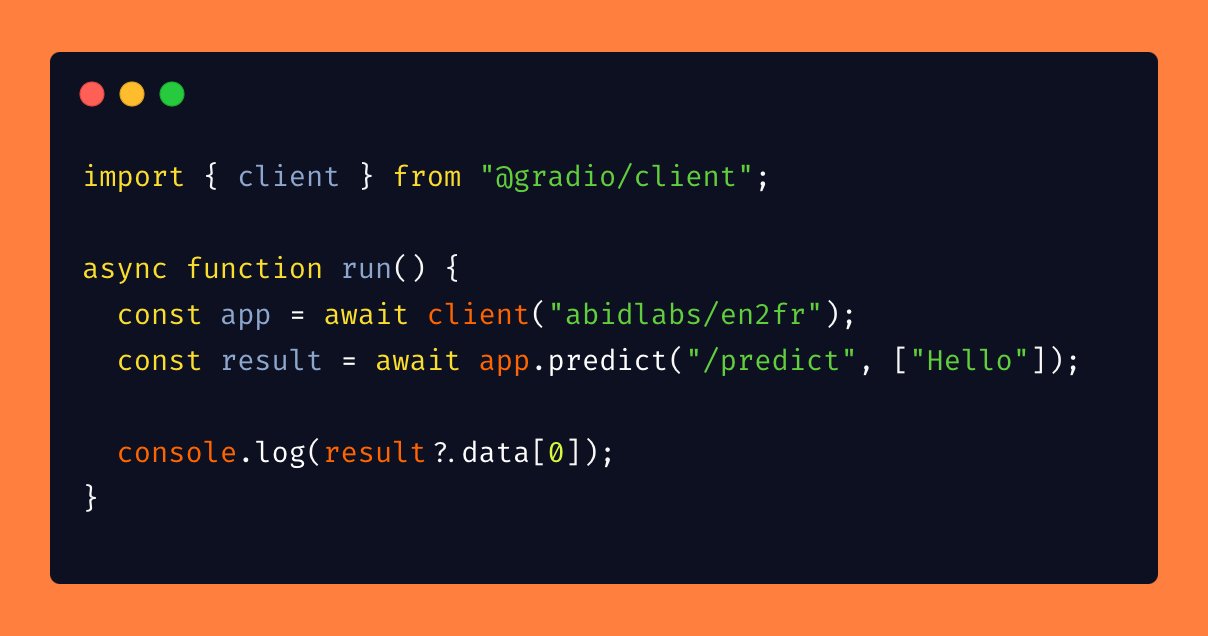 Gradio 团队已经发布了 JavaScript Gradio 客户端,这是一个能够将任何使用 Gradio 构建的应用当作 API 来调用。