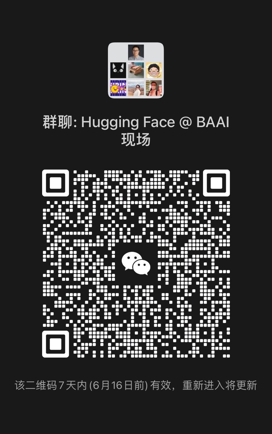 我们建立了一个 Hugging Face @ BAAI 现场群,欢迎加入并与我们见面!