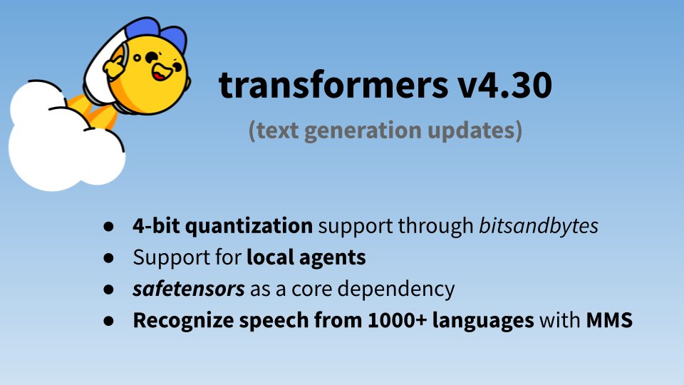 Transformers v4.30 发布: 在更小的设备上运行大语言模型