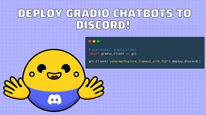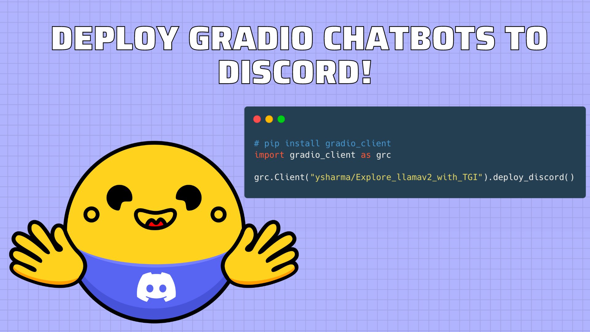 Gradio 版本 3.39.0 刚刚发布,现在可以将 Gradio 聊天机器人部署为 Discord 机器人!![]()