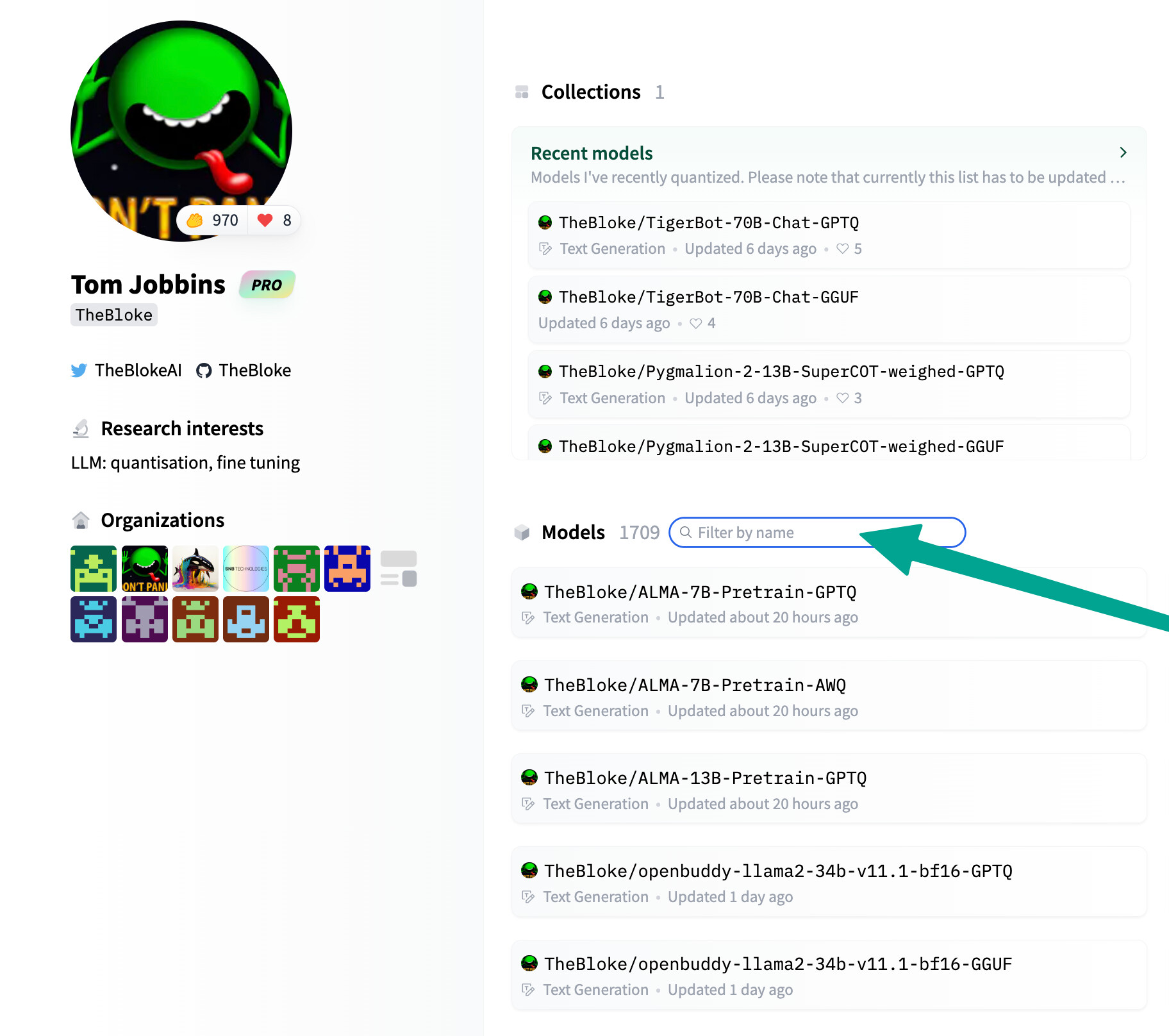 搜索 / 过滤某个 Hugging Face 用户上传的模型