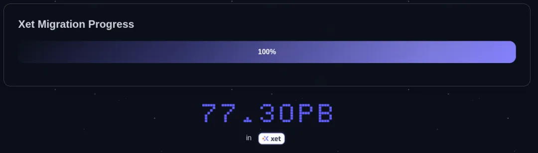 一年后,超过 6,000,000 个仓库、77PB+ 的数据已成功迁移至 Xet 后端,带来了更快、更智能的上传与下载体验 ![]()
