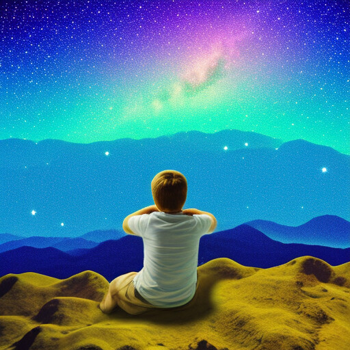 prompt = "collage style kid sits looking at the night sky, full of stars"