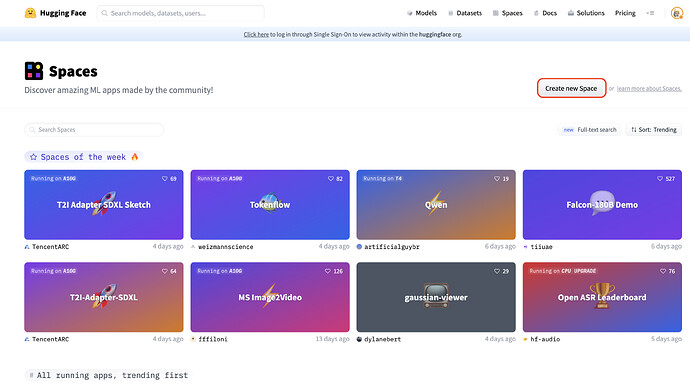 你可参阅 此处,以获取有关 Spaces 的更多信息。