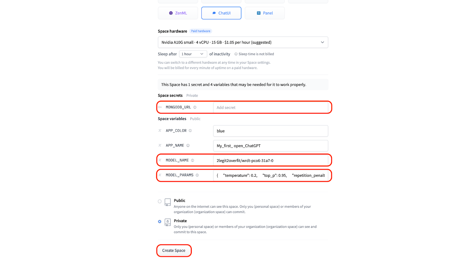 第 3 步: 使用自己的模型创建一个新的 ChatUI Space