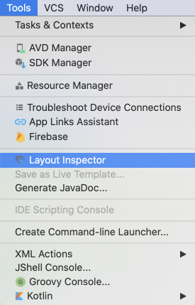 从工具 (Tools) 菜单启动布局检查器 (Layout Inspector)