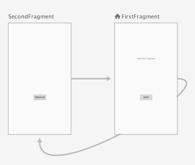 在之前图表的导航图中,您还可以发现两个目的地之间的箭头,它们定义了导航图中可能的导航操作 (action)。其中包括了从 FirstFragment 到 SecondFragment 的导航,以及从 SecondFragment 返回 FirstFragment 的导航。