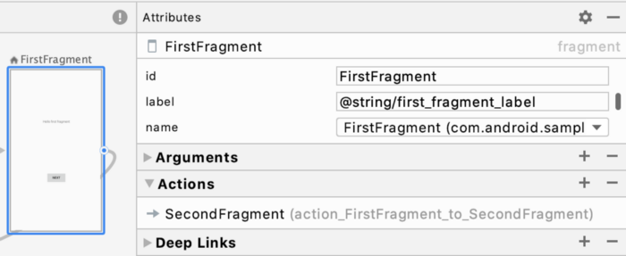 android:name="com.android.samples.navoverviewarticle.FirstFragment"