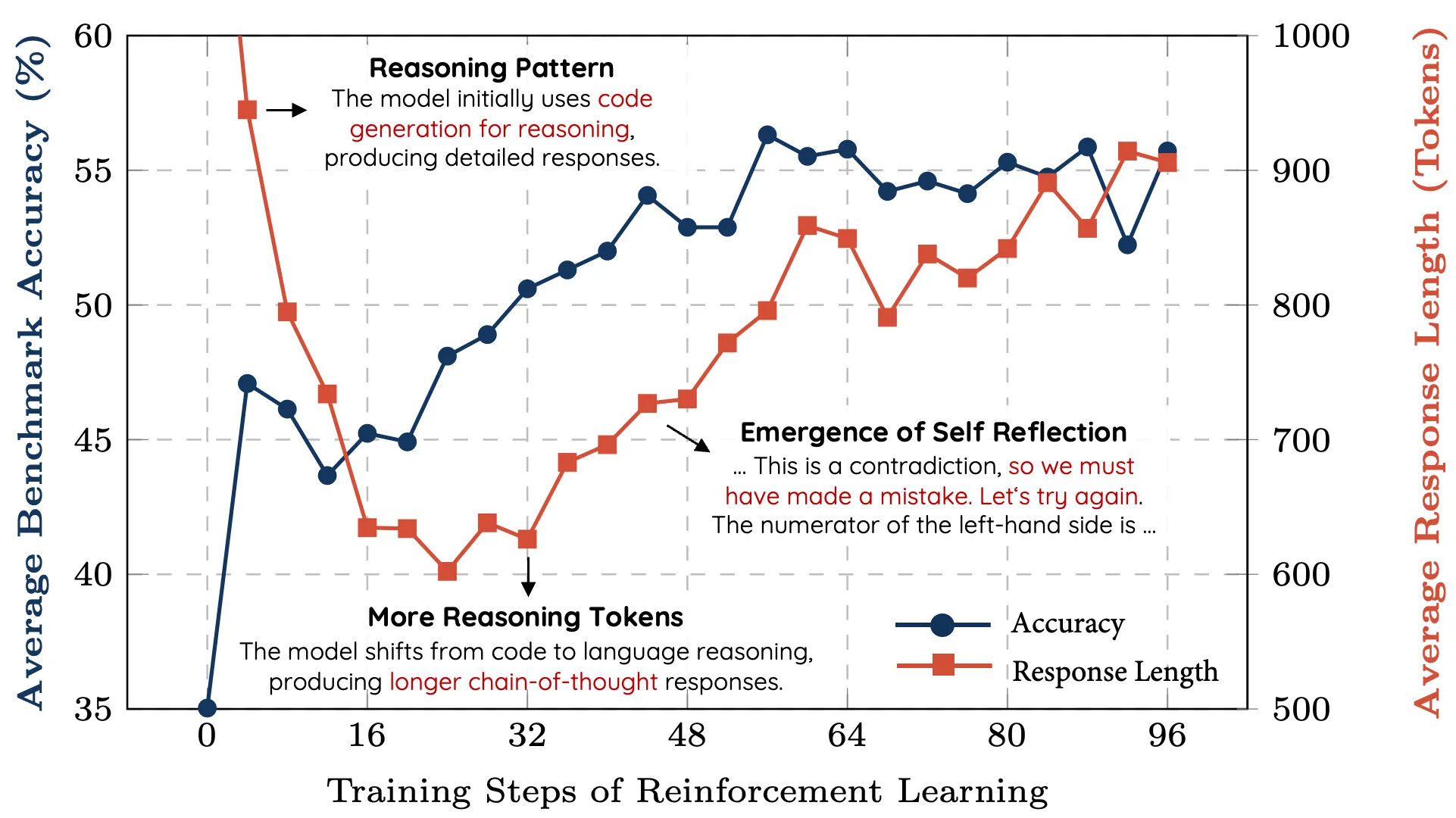 香港科大的图表,随着训练越久,模型的推理过程越长