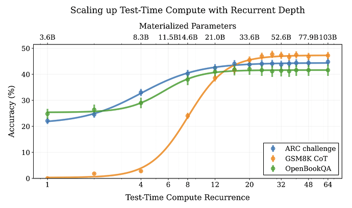 一篇新 论文 挺有意思,用循环语言模型在潜在空间隐式推理,能扩展测试时的计算。这跟 Meta 的 Coconut 项目 在潜在空间训语言模型有点像,但现在用在了推理上。好处是效率高,不用生成一堆“思考”token 也能出好成绩。