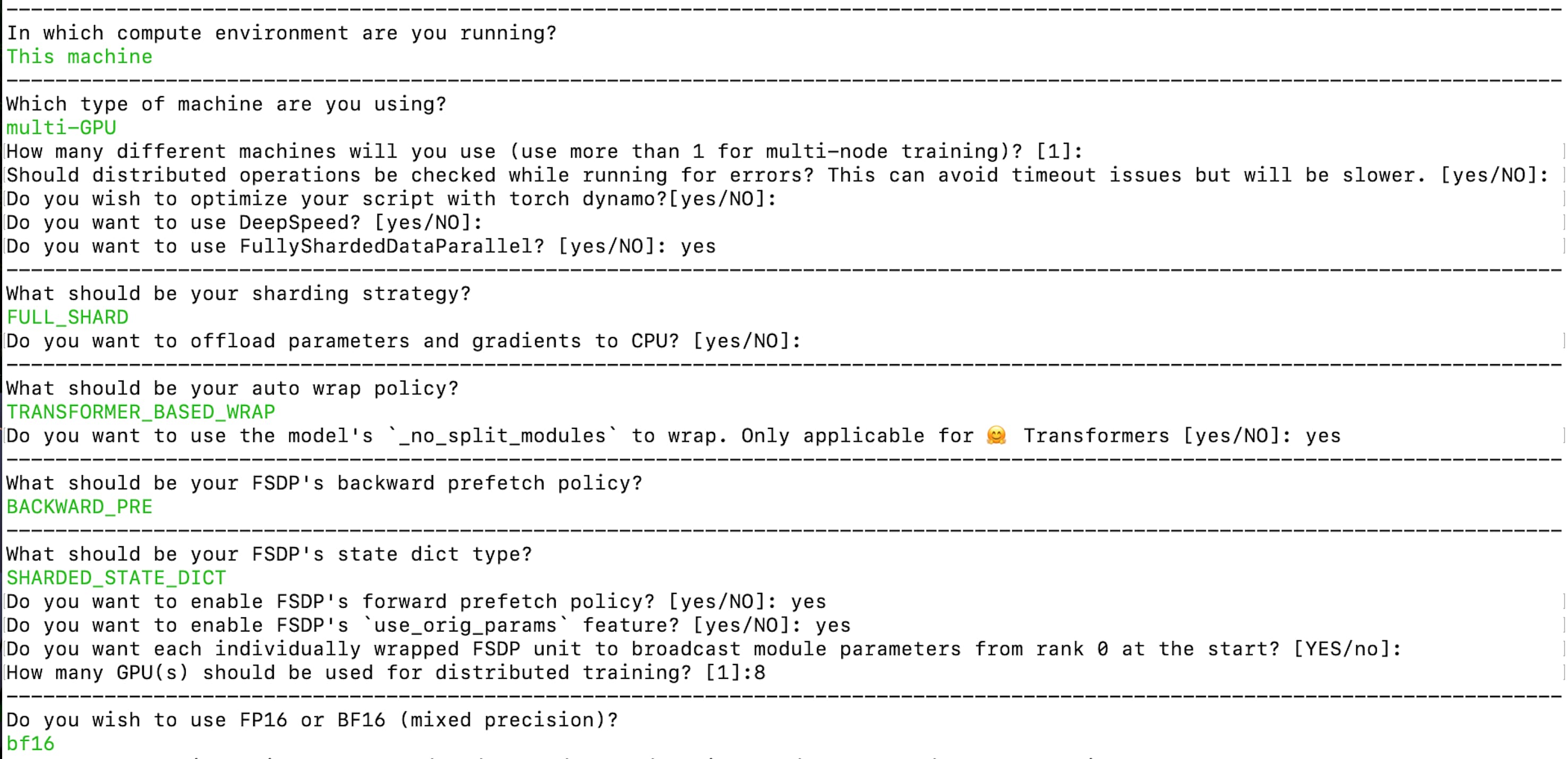 - FSDP 配置文件: https://github.com/pacman100/DHS-LLM-Workshop/blob/main/chat_assistant/training/configs/fsdp_config.yaml