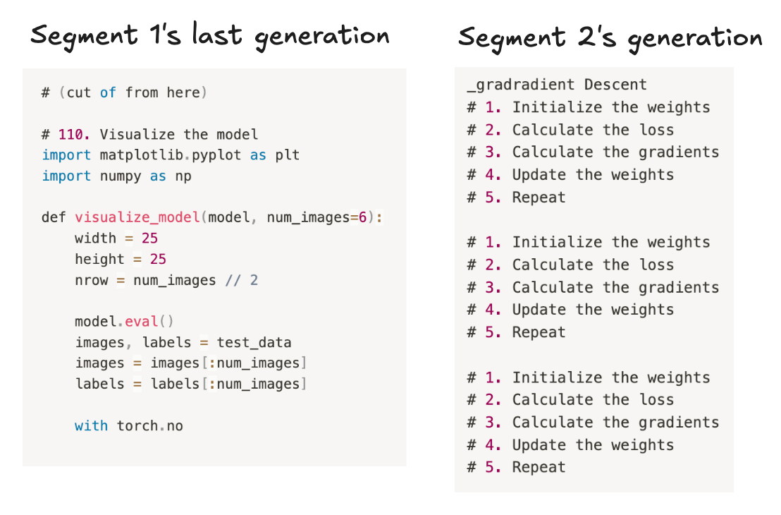 - 还有另一个错误会扰乱注意力输出的维度,导致即使在整个训练过程中损失减少,模型仍然无法在其片段长度内生成连贯的文本。经验教训: 即使你对模型的条件设置不佳,梯度下降仍然可以找到减少损失的方法。然而,模型不会按预期工作,所以要始终进行评估。
