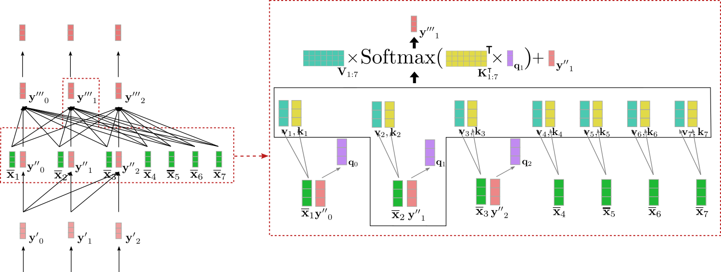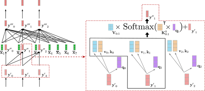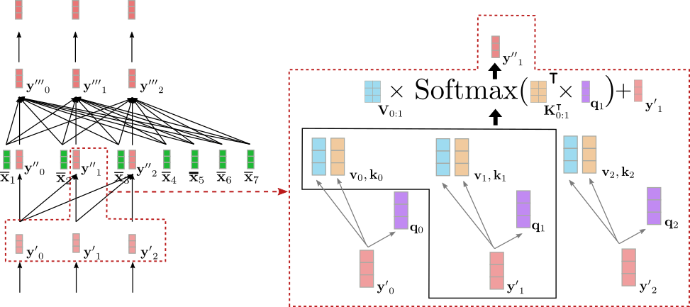 y′′′i=V1:nSoftmax(K1:n⊺qi)+y′′i