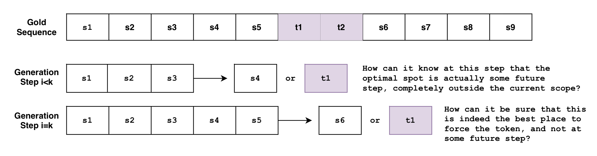 然而,这个事情操作起来并不容易,它要求我们在生成过程中的 某个时刻 在输出文本的 某个位置 强制生成某些特定子序列。