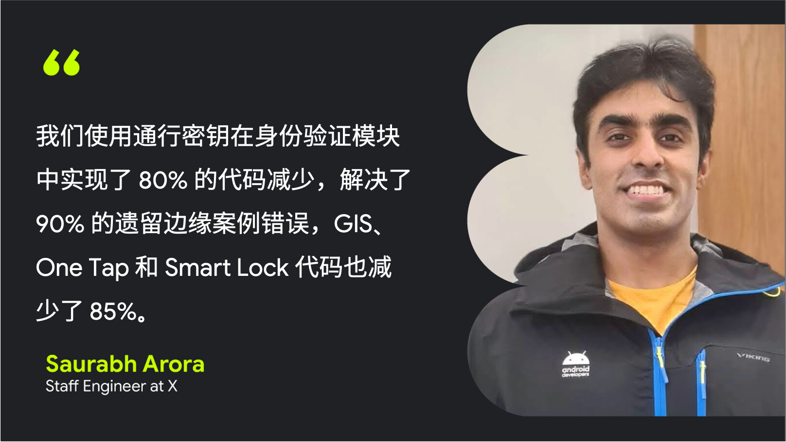 “对于考虑集成通行密钥的开发者,我们的建议是利用 Credential Manager API。” Saurabh 表示。“此 API 确实简化了流程,并减少了您需要编写和维护的代码,让开发者能够更好实现功能。”