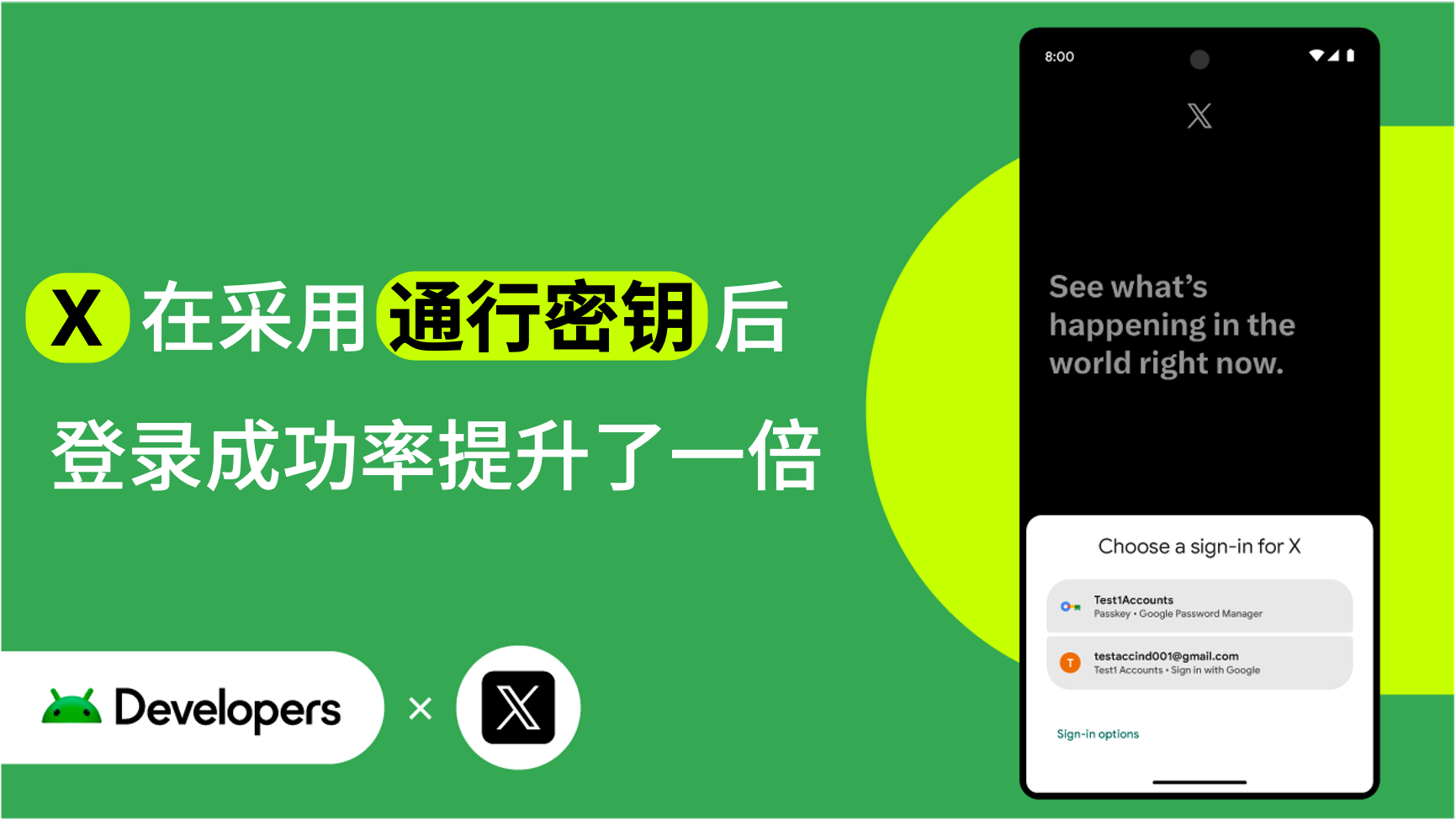 X 开发者通过集成 Credential Manager API 显著提升了开发效率。借助 Credential Manager API 转向采用通行密钥,他们实现了: